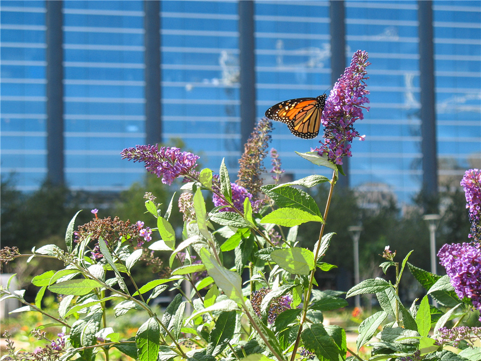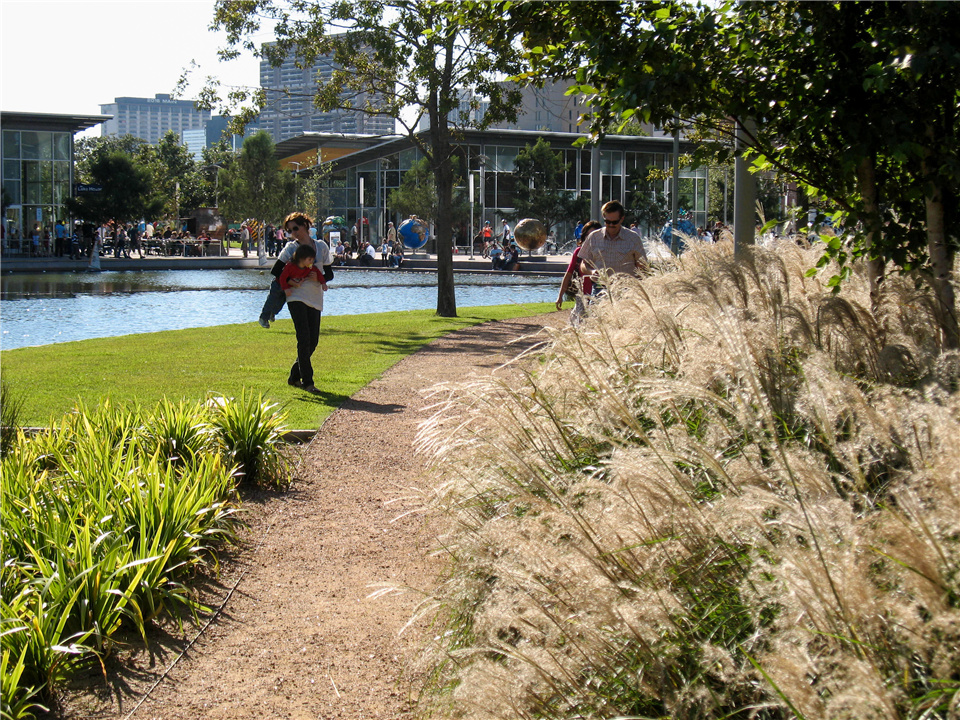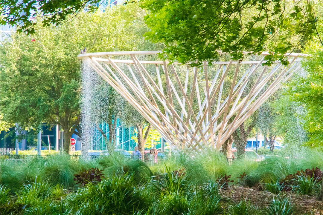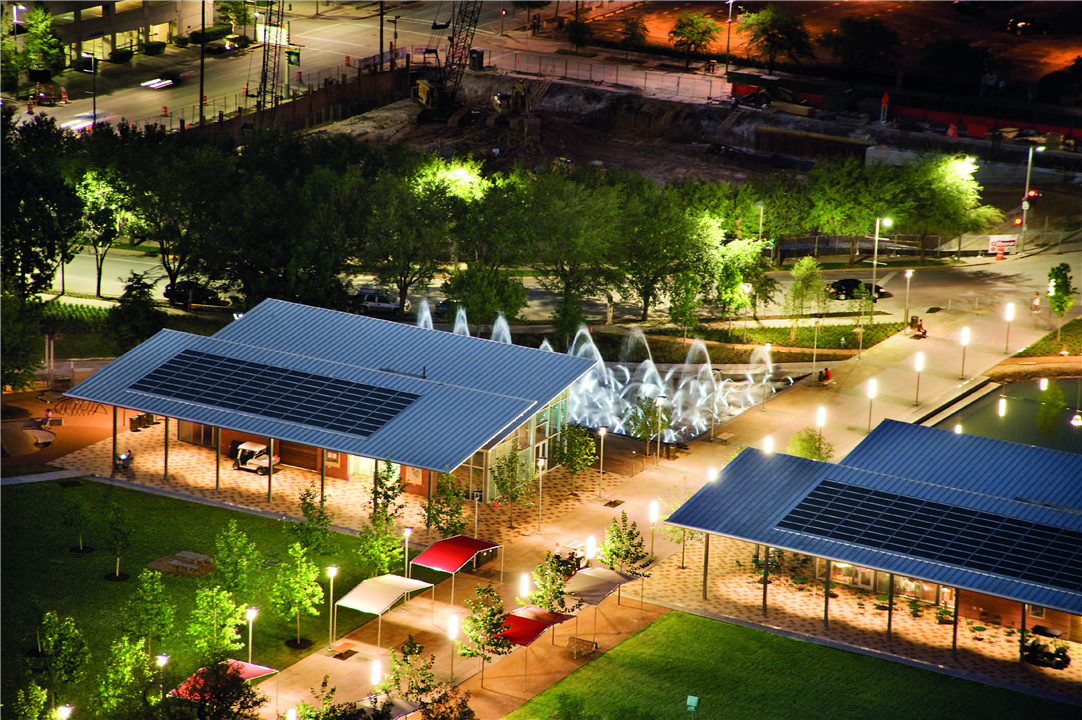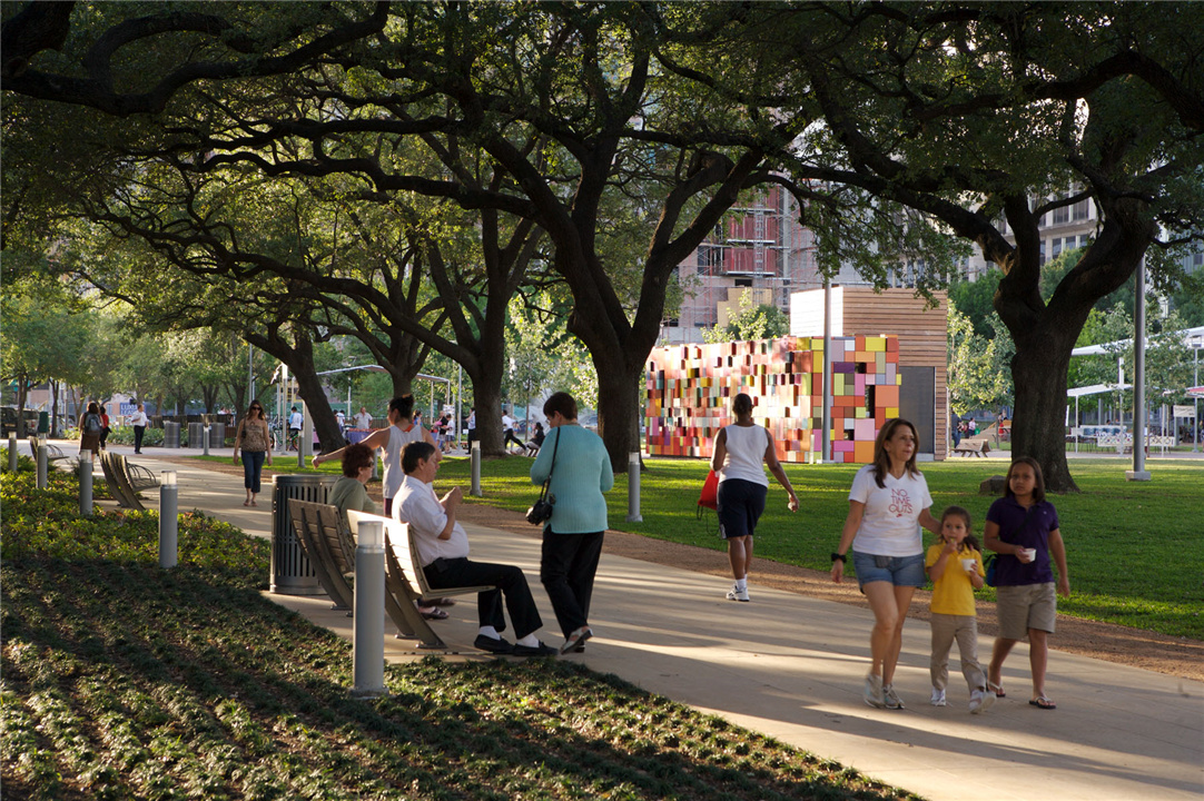 allee, and Red Oaks and Maples were transplanted from adjacent building sites. Approximately 85% of the more than 200 different species of plant materials specified for the park are native to Texas. The rich plant palette provides seasonal interest year-round for visitors and food and shelter for urban wildlife.