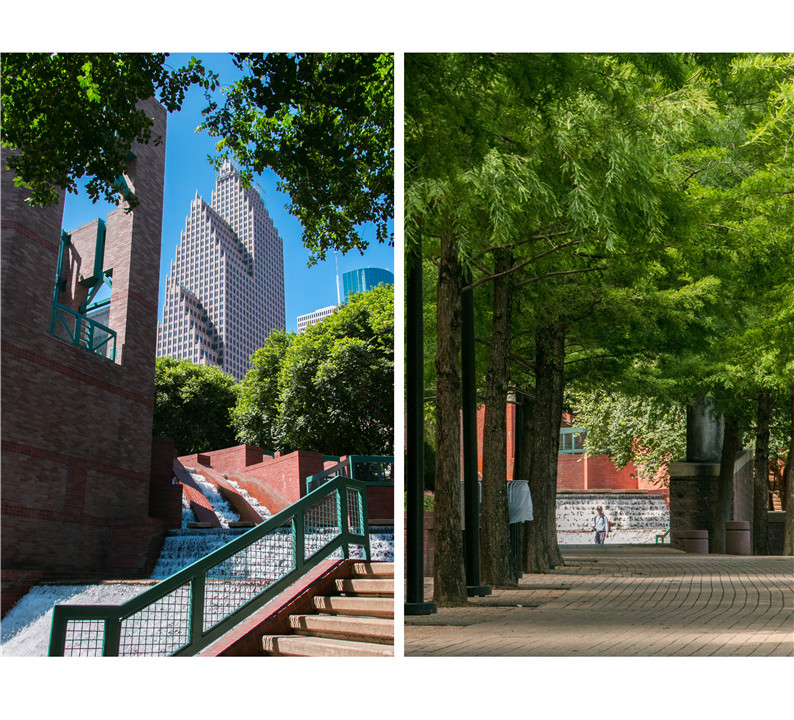 Awards include the International Waterfront Center’s Excellence on the Waterfront Award, the American Planning Association’s Highest Honor for Enhancing Public Spaces, the Texas Chapter of the American Society of Landscape Architects’ Classic Award, and the Texas Downtown Association’s President’s Award, among others. Art in the park includes works by Chas Fagan, Mel Chin, Dean Rusk and Weili(Willy) Wang.